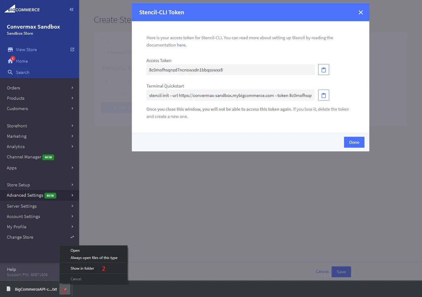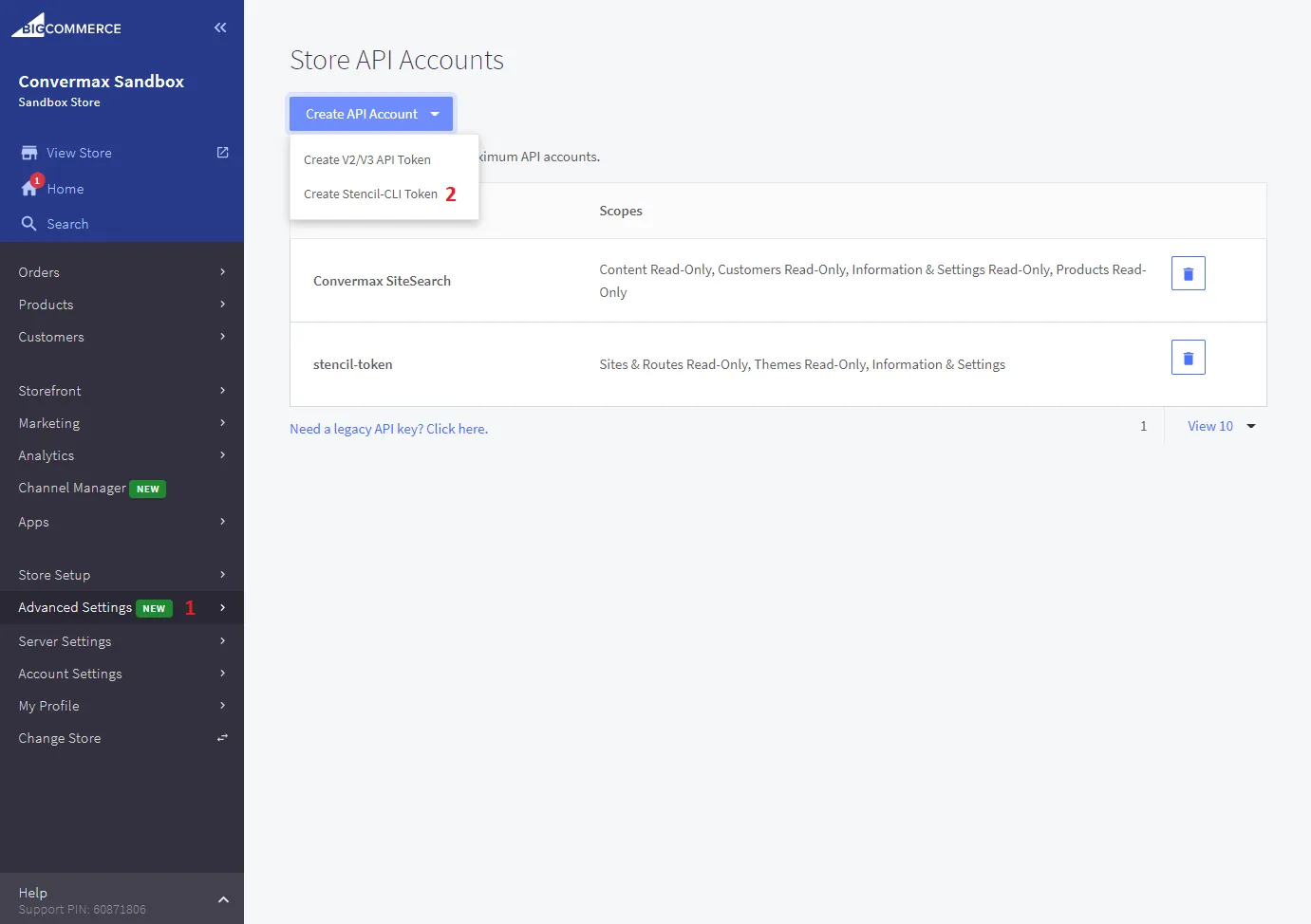 Section titled “Open your BigCommerce admin dashboard.”1. Go to Advanced Settings > API Accounts and click on Create API Account > Create Stencil-CLI Token