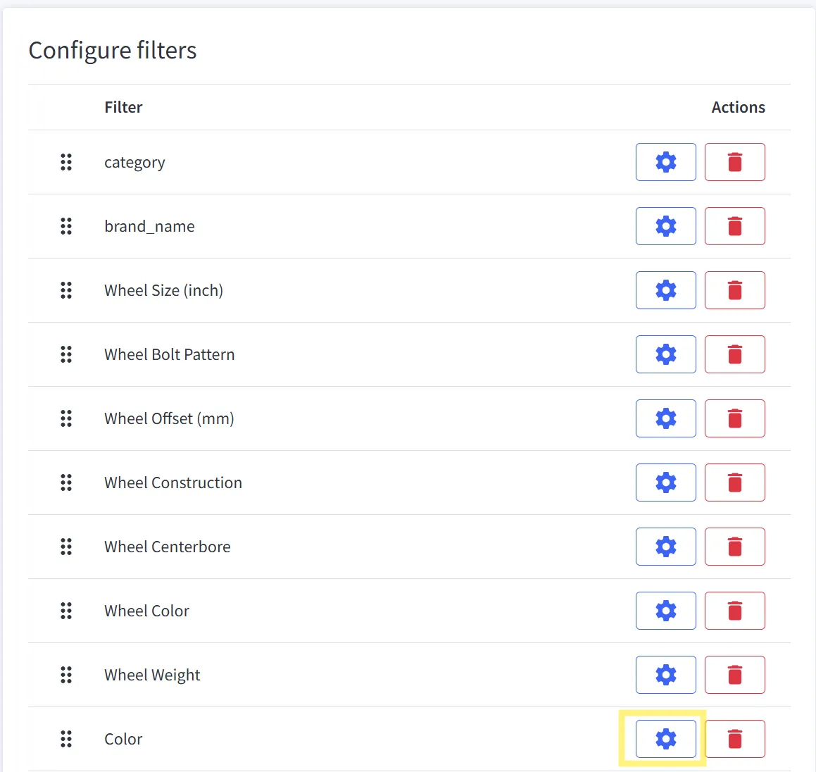 Go to Admin → Apps → Convermax: Year Make Model → Menu → Filters → Filter settings (gear icon)