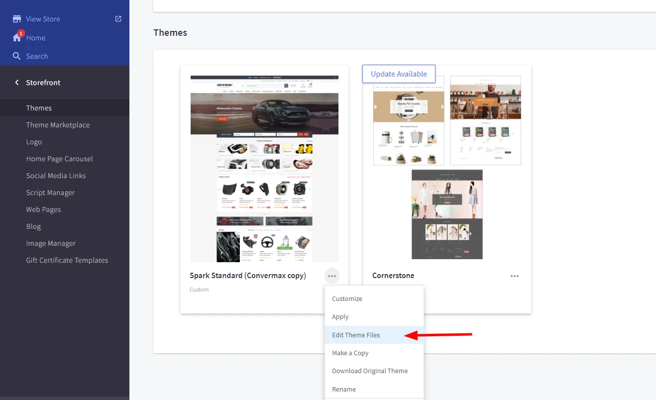 Section titled “2. Click “Edit Theme Files” on the created theme copy”