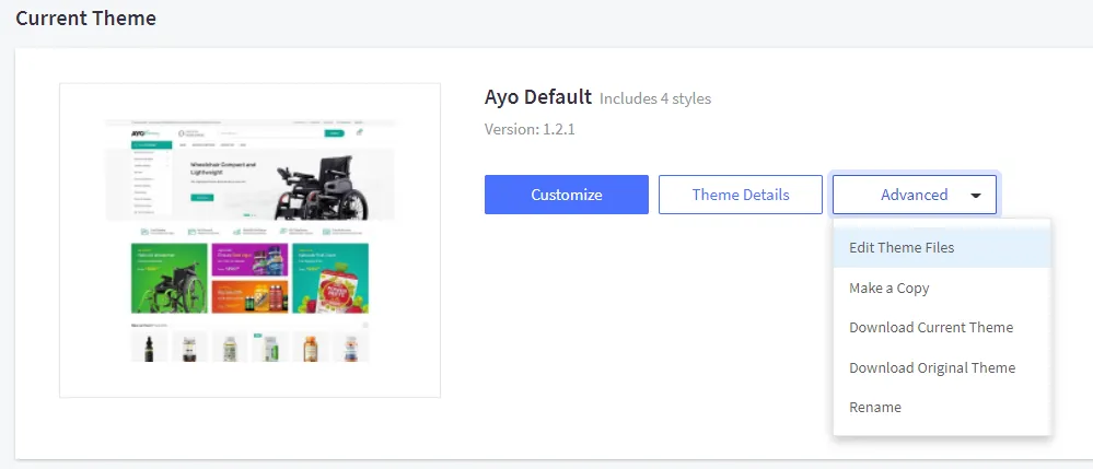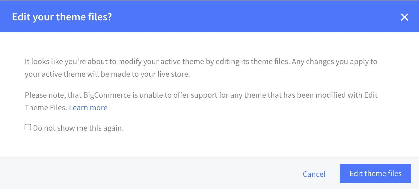 You might get a warning pop-up. Click **Edit theme files** to continue.