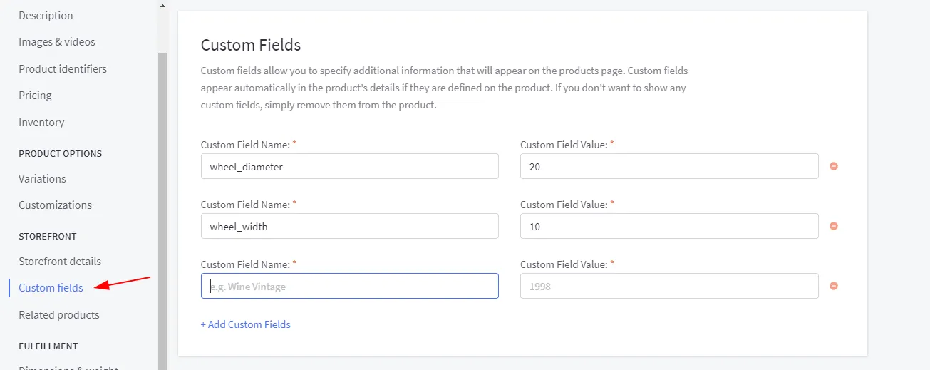 Section titled “Add wheel/tire attributes using custom fields”
