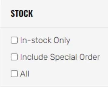 Section titled “Trivia:”- If a product’s Inventory is not tracked (Track inventory is OFF), and its Purchasability is NOT set up to “This product cannot be purchased in my online store”, then such a product won’t be “In Stock” or “Out of Stock” at all. It still can be found under the “All” option though. However, it still can be a “Special order” product. Or not. It depends on the Purchasability setting or the “Availability Text” field.