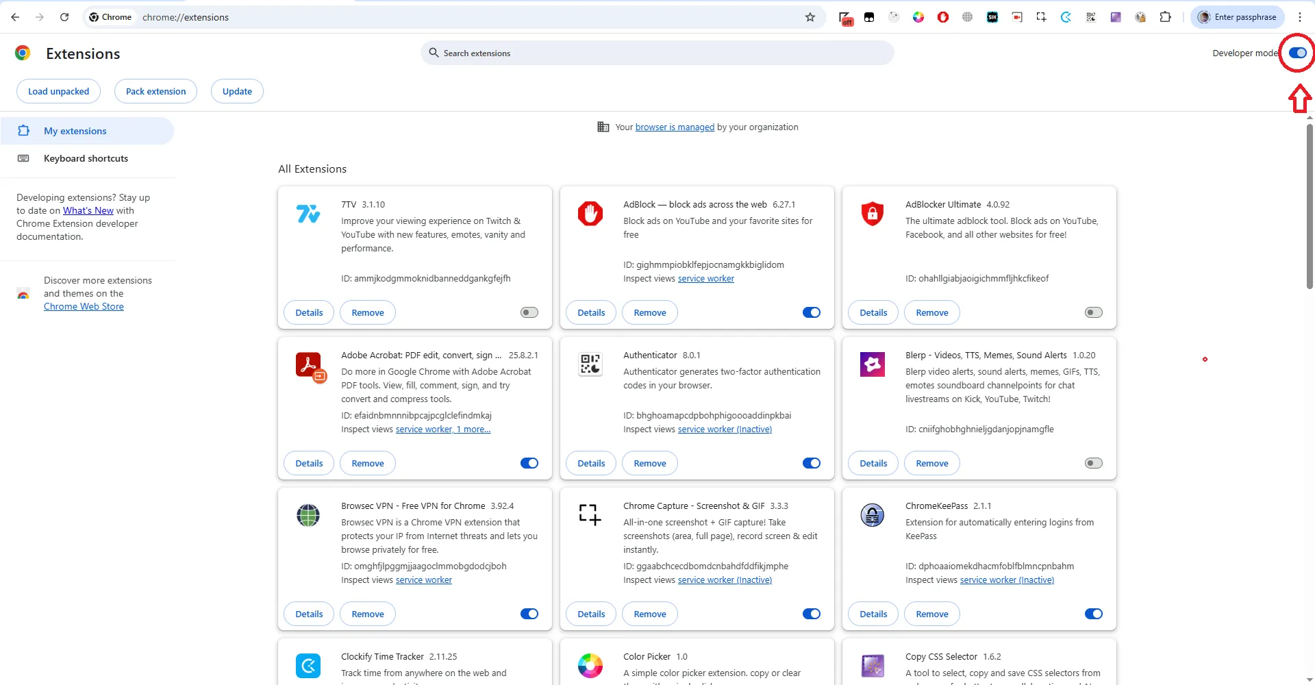 Enable Developer mode in the top right corner