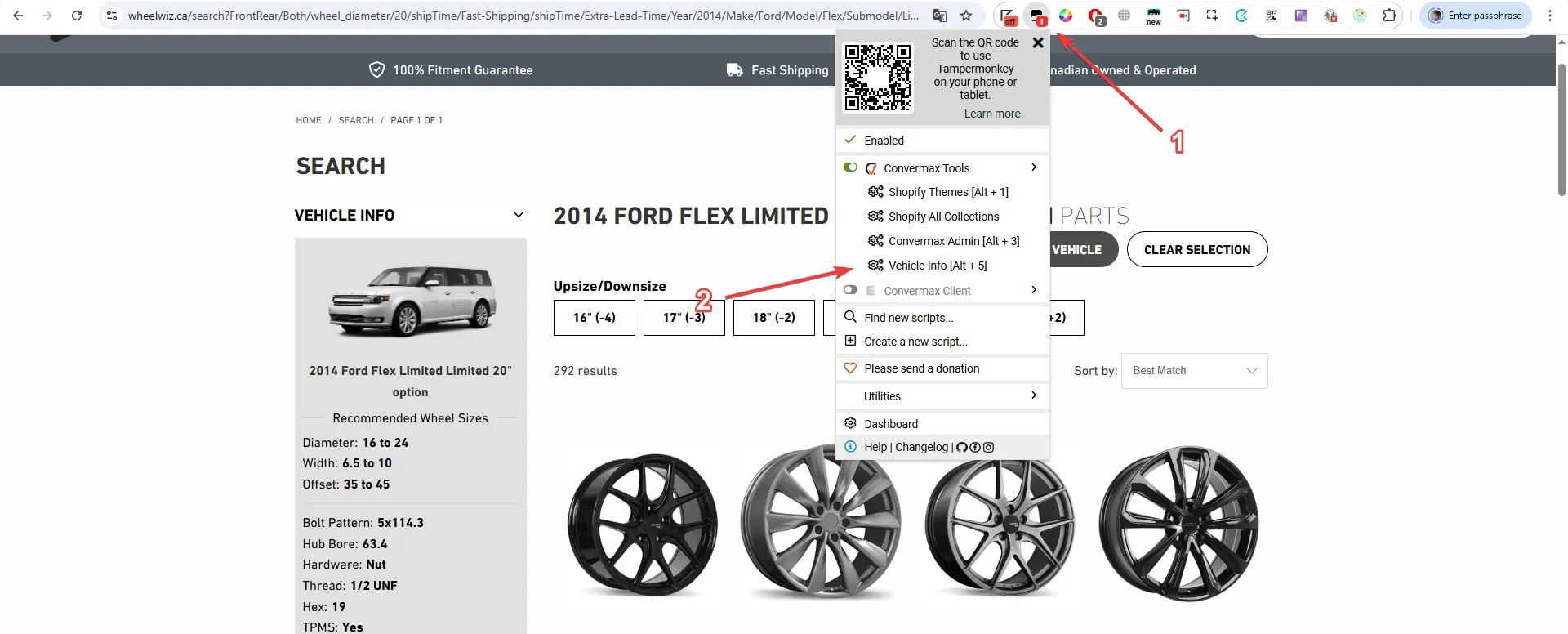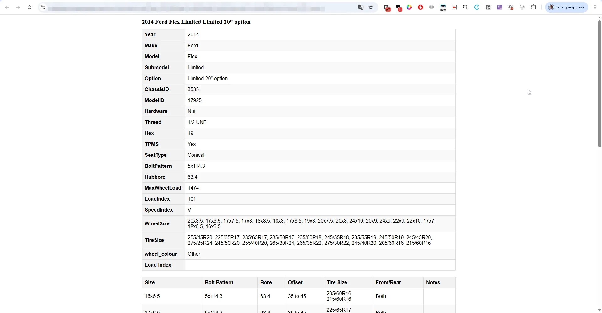 - Open extended vehicle info, listing all wheel-tire options fetched from the wheel-tire fitment source for the selected vehicle: