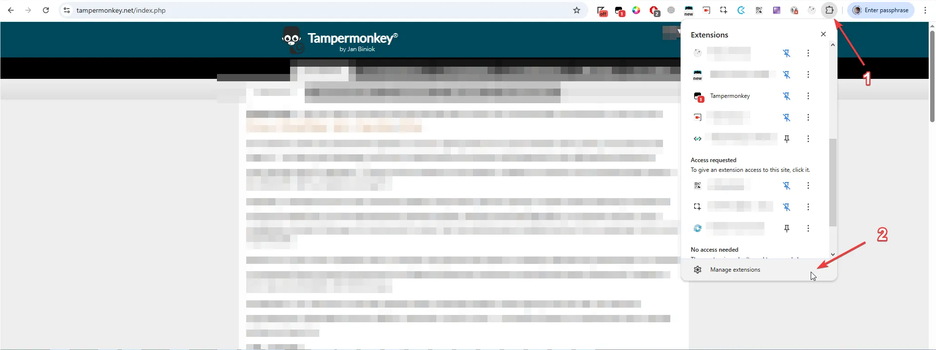 - Right-click the Tampermonkey icon → Manage Extension