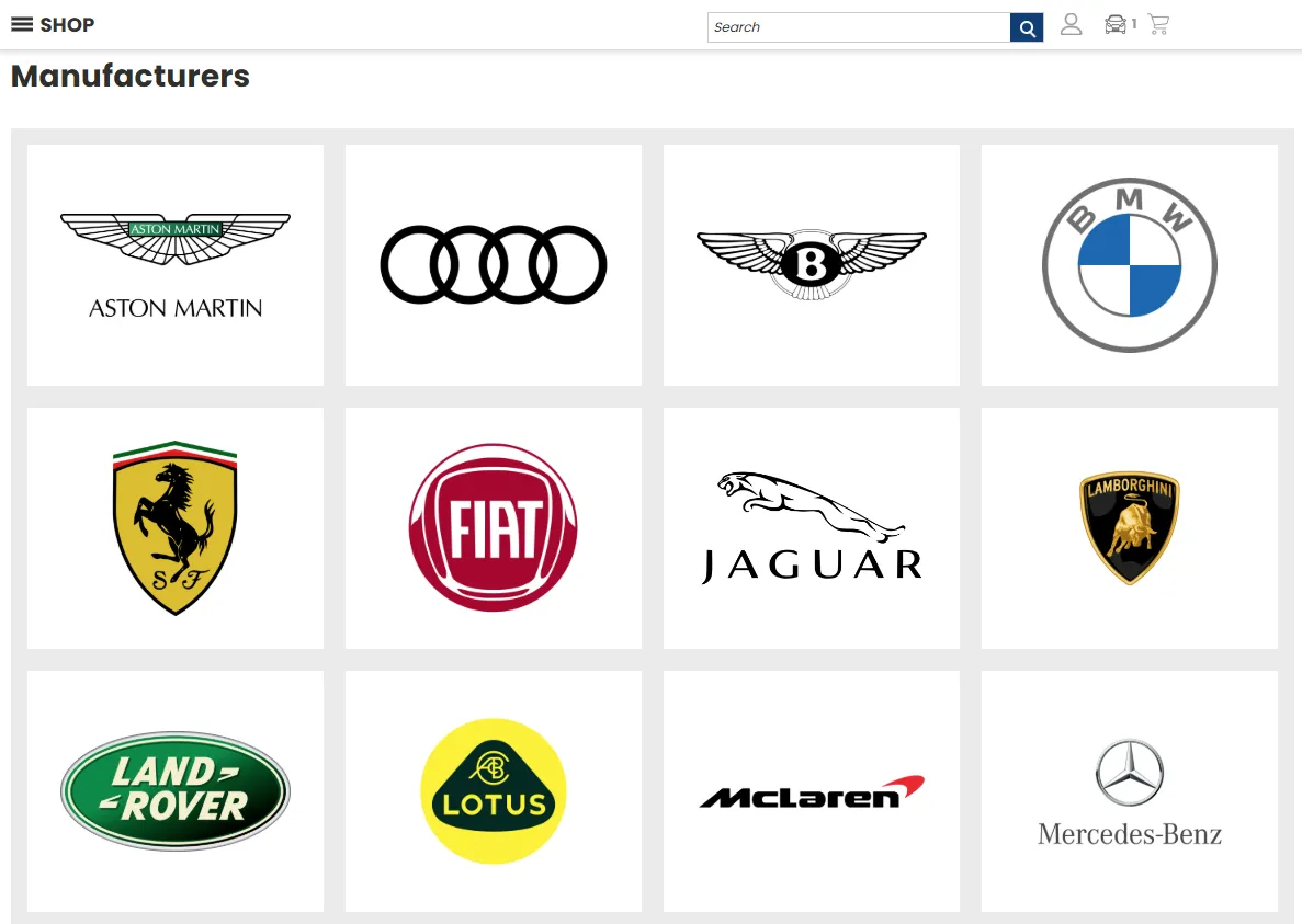 ConfigureManufacturersPage: trueto Schema.Extra and reindex the store. This will create extra for Make field with manufacturer images and links to the search page. The link will look like this https://your-domain.com/search?Make/Audi/Fitment/Vehicle-Specific. You can change the extra data by specifying the third argument int the MakesHelper.GetExtra() method call. The platform converters have a virtual methodMakeExtraSelectorthat you can override. - Create a widget: