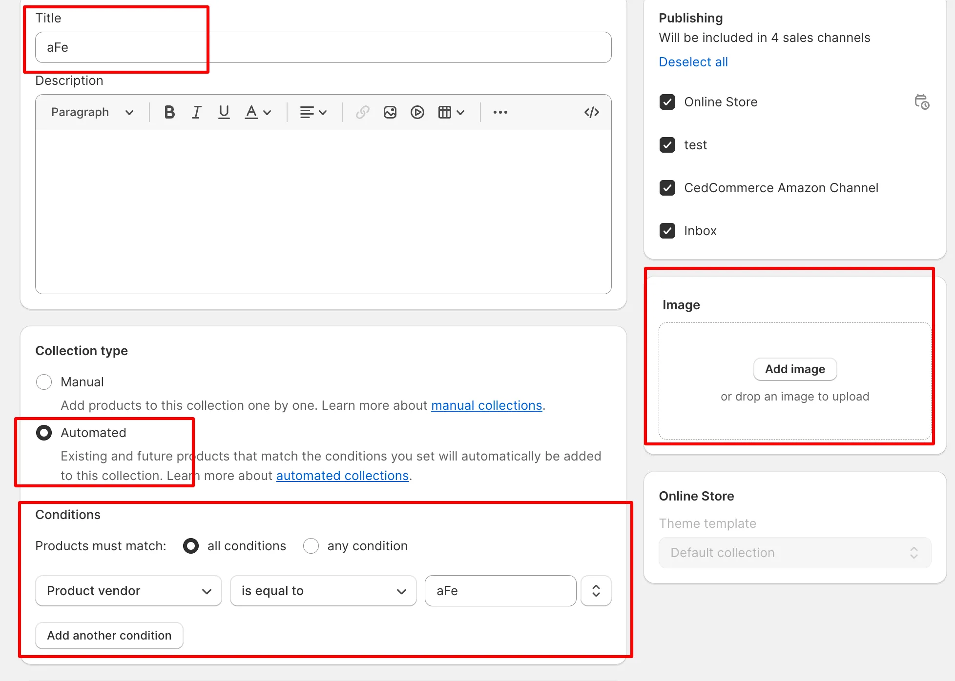 - Upload the needed image as the collection’s image.