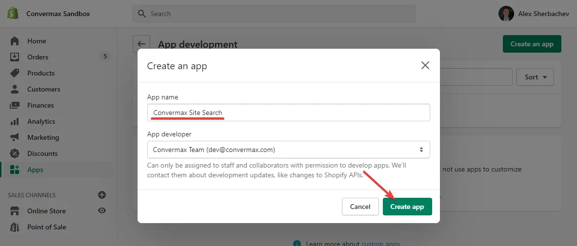 - Enter ‘Convermax Site Search’ as ‘App name’;