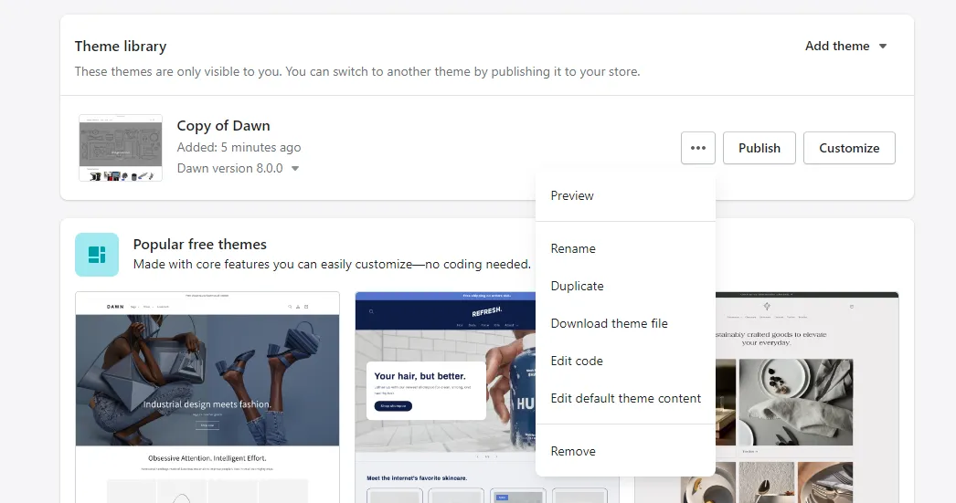 Section titled “Theme Integration”If you’re already running a live store, duplicate the theme you’re using, and implement the Convermax app in that copy.