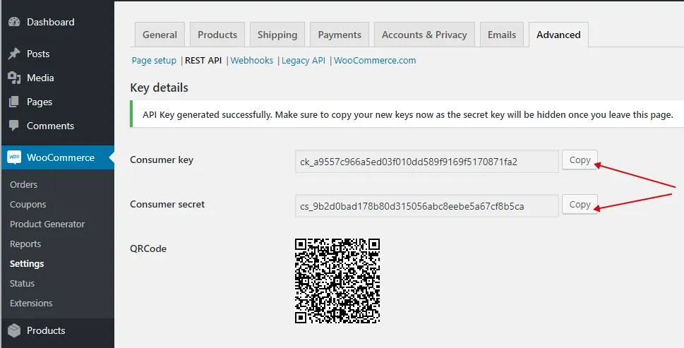 - Open your WooCommerce admin dashboard. Go to WooCommerce > Settings > Advanced > REST API and click “Add key” button.